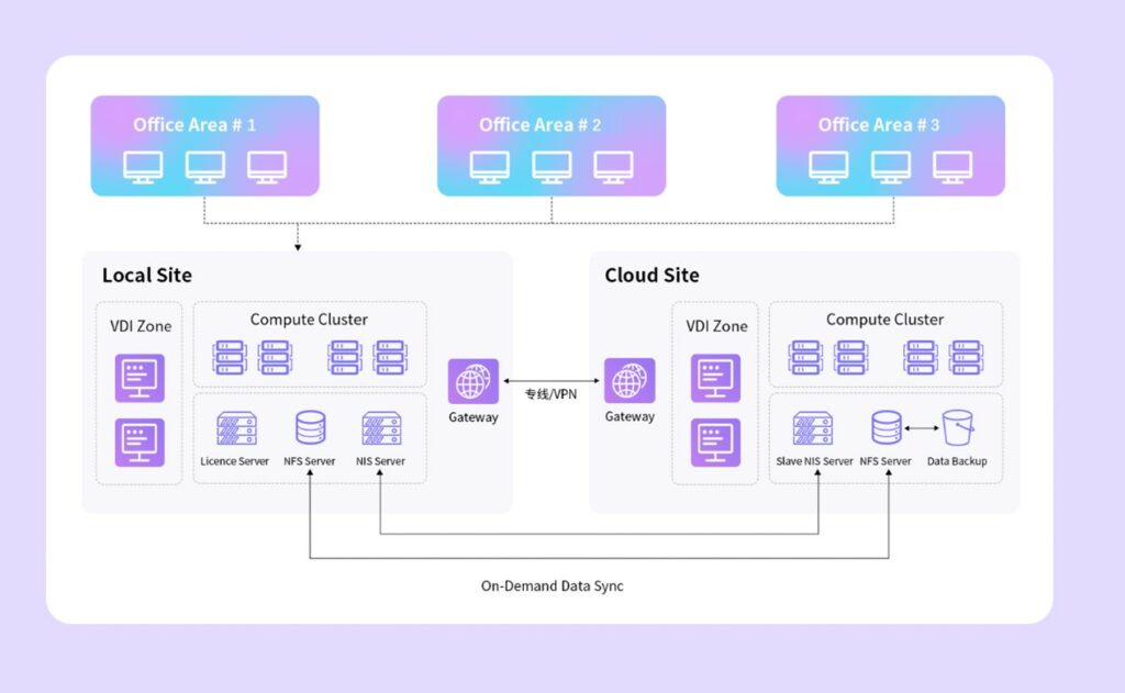 我們?yōu)槟矨I芯片設計公司搭建的多地協(xié)同混合云平臺,在不改變用戶原有工業(yè)軟件使用習慣的基礎上,實現(xiàn)了三地統(tǒng)一協(xié)同管理、本地集群利用率翻三倍、IC設計全生命周期一站式覆蓋、全自動彈性調(diào)用云資源,最終為用戶解決了算力高峰資源不足問題,大幅提升了研發(fā)設計效率。
