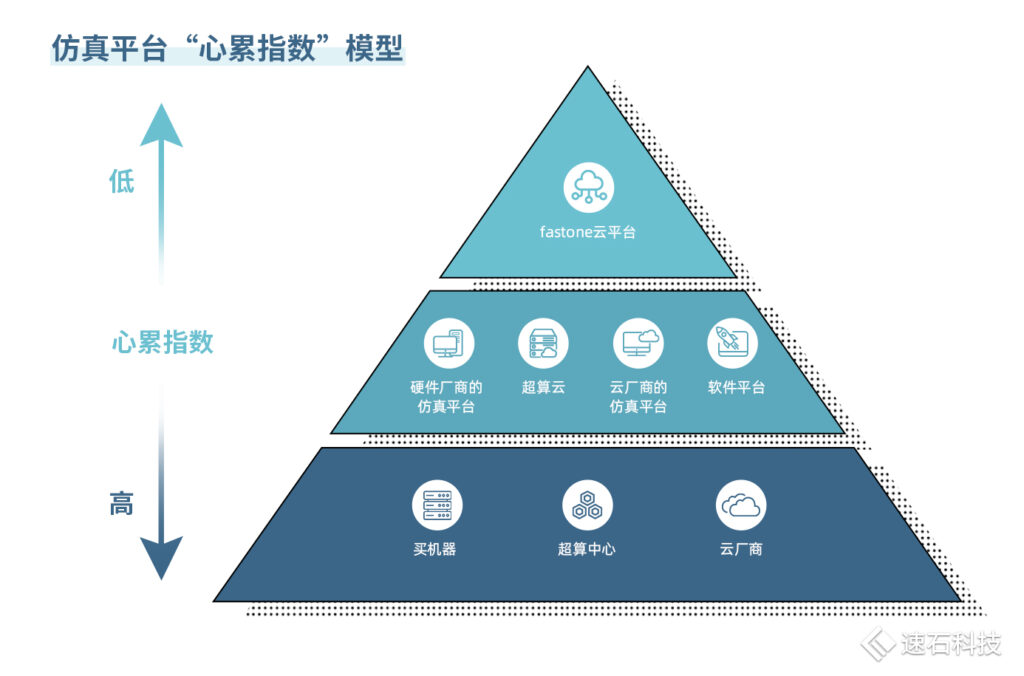 該模型呈金字塔結(jié)構(gòu),覆蓋了目前市面上所有類型的仿真平臺(tái)產(chǎn)品/解決方案,從金字塔底層到塔尖,心累指數(shù)逐漸降低。