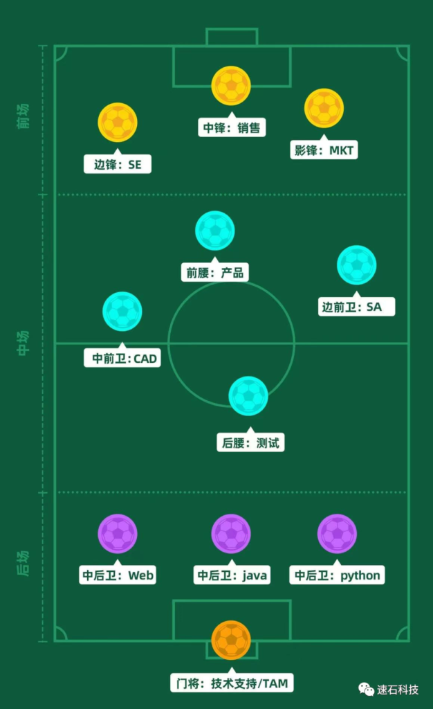 如果速石是一支足球隊,我們需要招的各大崗位關系如圖所示: