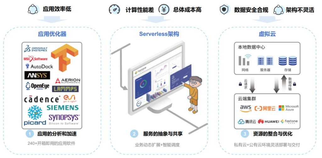 盡管亞馬遜、阿里云、華為云等主流云廠商的解決方案較為完善,但其產品和服務數量較為龐大,對芯片設計行業沒有針對性,界面也較為復雜,工程師學習存在一定門檻和成本。而較Cadence、Synopsys、西門子EDA等國際EDA巨頭的云平臺,速石科技采用EDA廠商中立、多云的環境和架構,能夠為芯片設計公司提供兼容、完善的EDA工具鏈,以及“在任何時間點、任何應用場景中,最適合他們、最具性價比的云資源”。