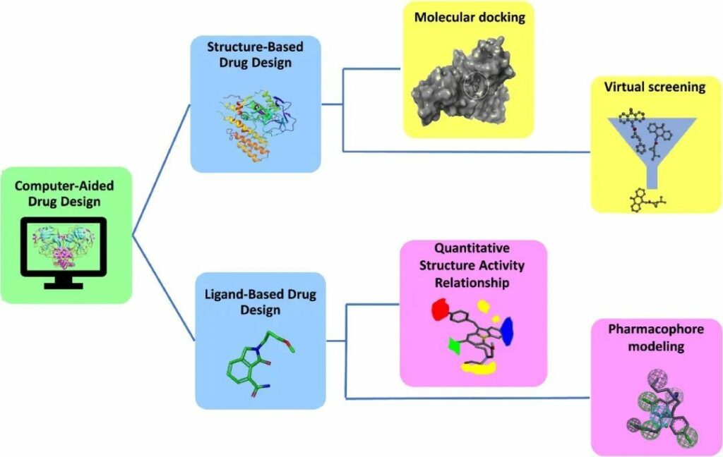 計算機輔助藥物設計(CADD)結合了各種計算機工具,以識別和開發有前途的lead。CADD包括計算化學、分子建模、分子設計和合理的藥物設計。在當今的大數據環境中,訪問大量數據并不能保證獲得適用的預測模型。為了預測治療效果和副作用,必須開發系統地解決大量、多維和稀疏數據源的技術。