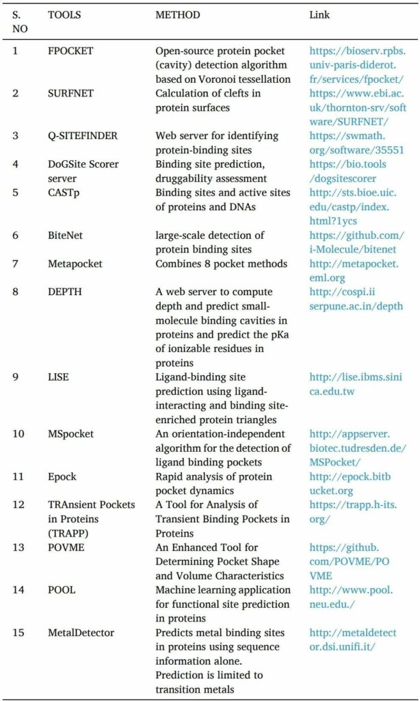 找到結合位點后,使用諸如Epock,TRAPP和POVME等工具或服務器來確定結合口袋的體積(表4)。