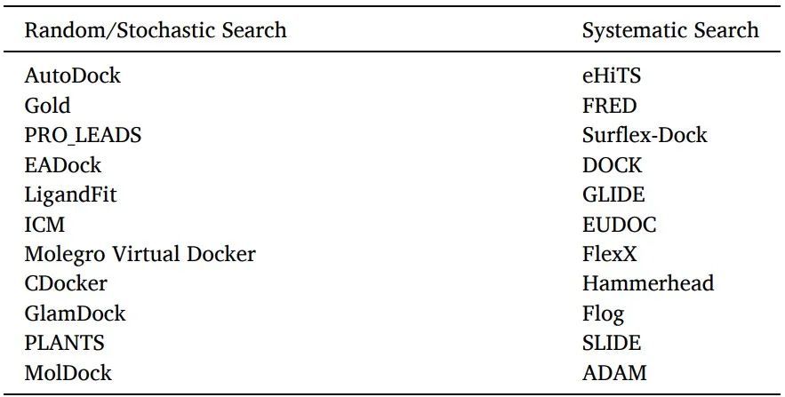 有兩種配體采樣算法:系統搜索和隨機算法(表6)。