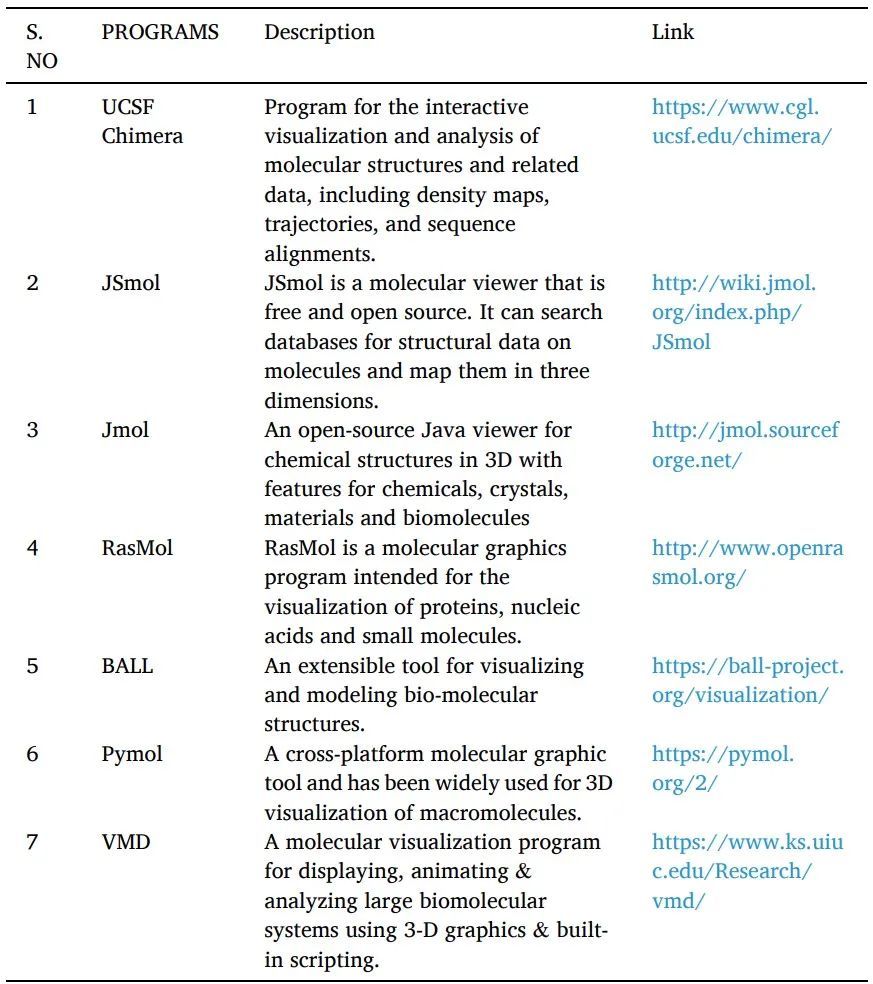 表7 用于以圖形方式顯示SBVS和分子對接結果的程序