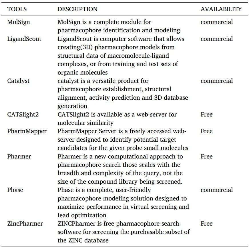 根據IUPAC的定義,藥效團是“實現與給定生物靶標的最佳超分子相互作用并觸發或預防其生物反應所需的空間位阻和電子特性的集合”。藥效團是對生物大分子識別配體所需結構特性的抽象描述(表11)。