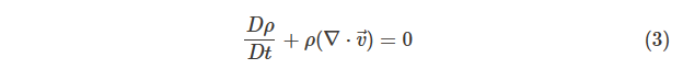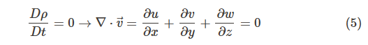 如果密度恒定,則假定流動不可壓縮,連續性方程簡化為: