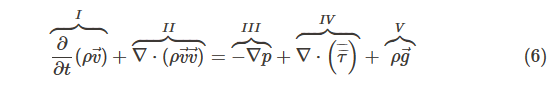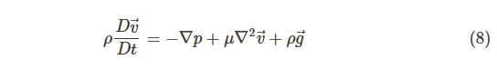 動量守恒可稱為納維-斯托克斯方程,由下式給出: