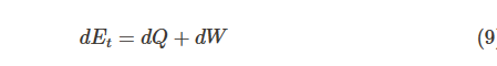 哪里dQ是添加到系統中的熱量,dW是在系統上完成的工作,并且dEt是系統總能量的增量。能量方程的常見類型之一是: