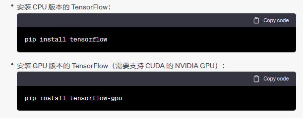 安裝 TensorFlow GPU 版本:首先,確保您已經安裝了適用于 GPU 的 TensorFlow 版本。 您可以使用以下命令安裝 TensorFlow GPU 版本(如果您尚未安裝):