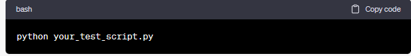 運行測試腳本:在命令行或終端中運行您編寫的測試腳本:
