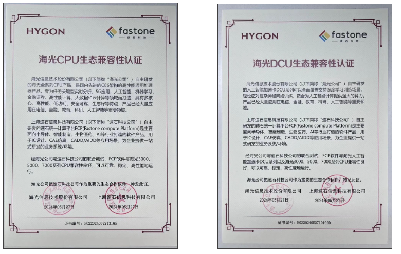經測試,速石FCP平臺海光人工智能加速卡DCU系列及海光3000、5000、7000系列CPU兼容性良好,可以可靠、穩定、高性能地運行,支持多樣化應用場景,并與海光互為重要的生態合作伙伴。