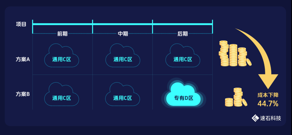 經測算,引入專有D區后比之前能降低高達44.7%的成本
