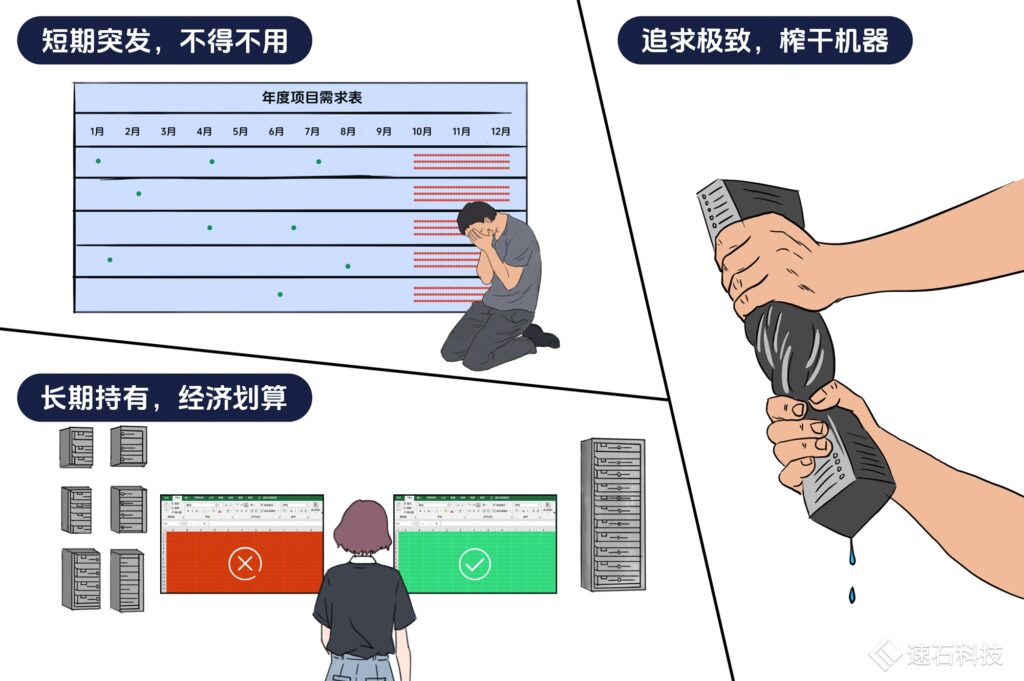 在項目研發的某些階段,是需要大內存機型的,而且需要使用的時間不一定很長。大內存機型難找,而且價格也相當高,需求又比較碎片化,就會導致機器經常供應不上。